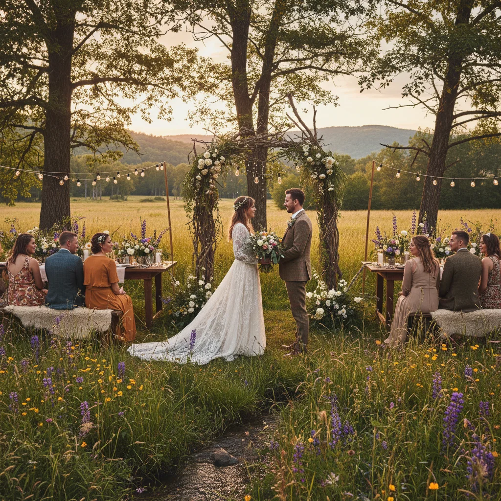 Romantic Meadow Wedding Ceremony at Sunset